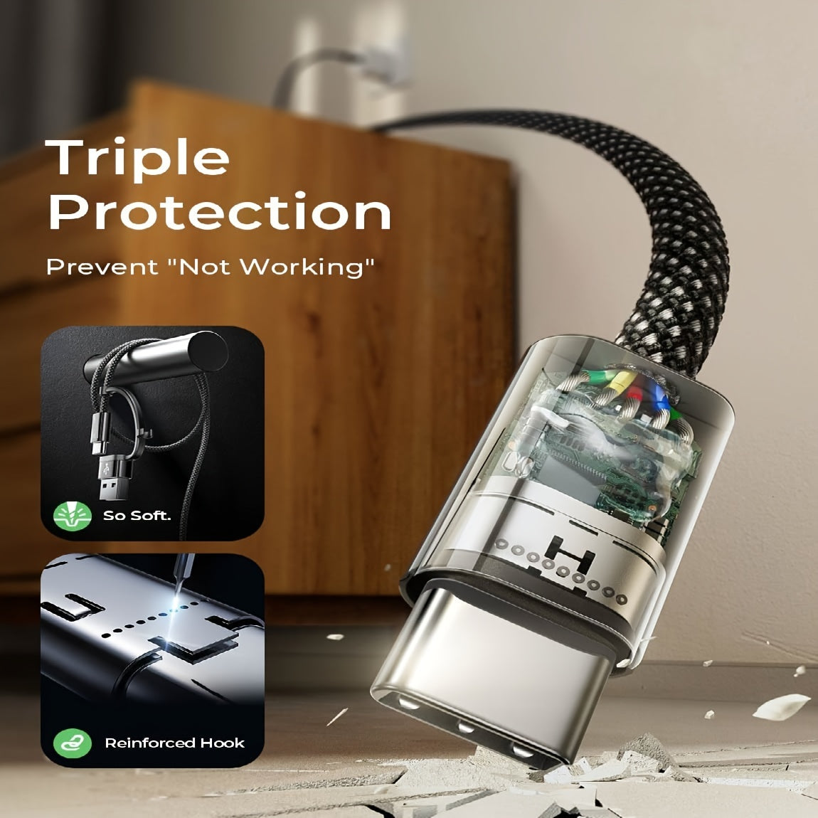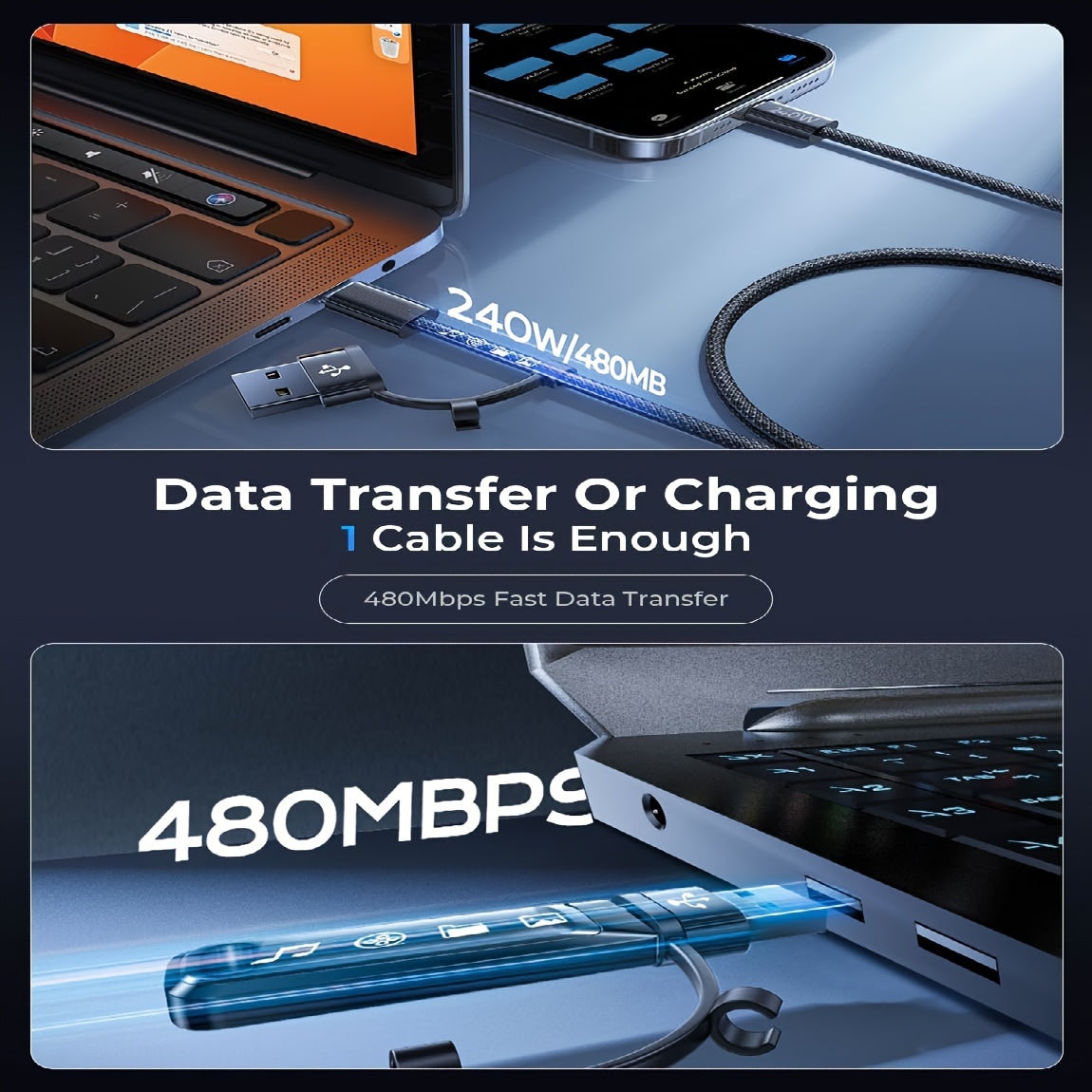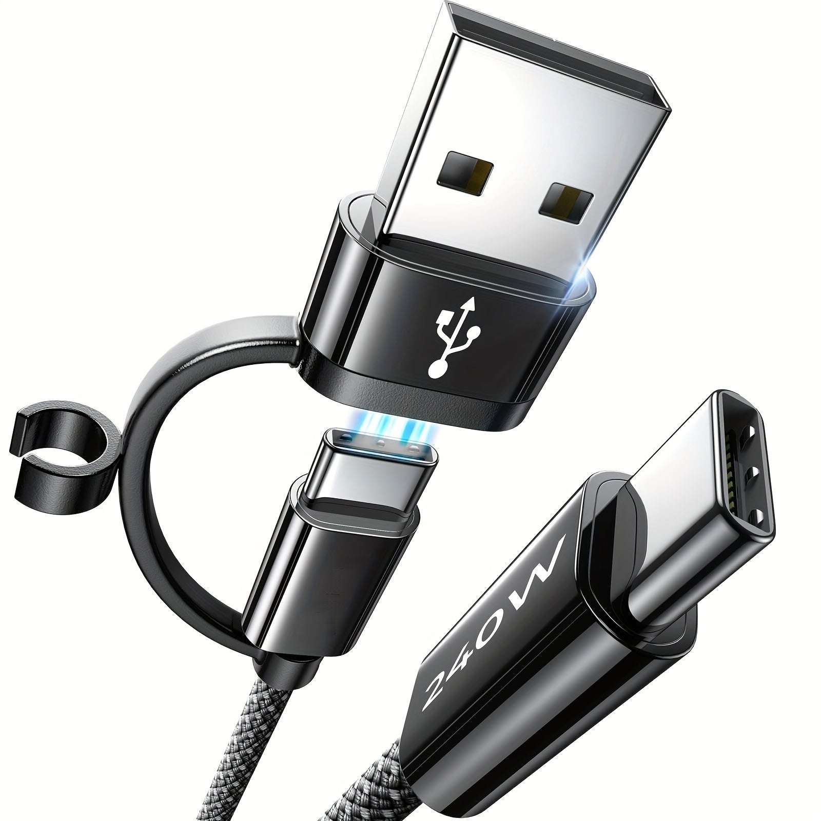 240W 3-in-1 Fast Charging Nylon Braided USB-C Cable, Round Shape, USB Powered, ≤36V Male to Female Connector for MacBook, iPhone, iPad, Samsung & More - No Battery Required
